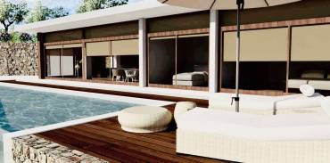 Autour de la future villa, le terrain d’environ 2 800 m² est composé de vigne, d’oliviers, de deux puits artésiens, d’un réservoir d’eau et d’une source. L’accès à la propriété se fait par une allée bordée d’une pergola de vigne d’environ 40 mètres de long.