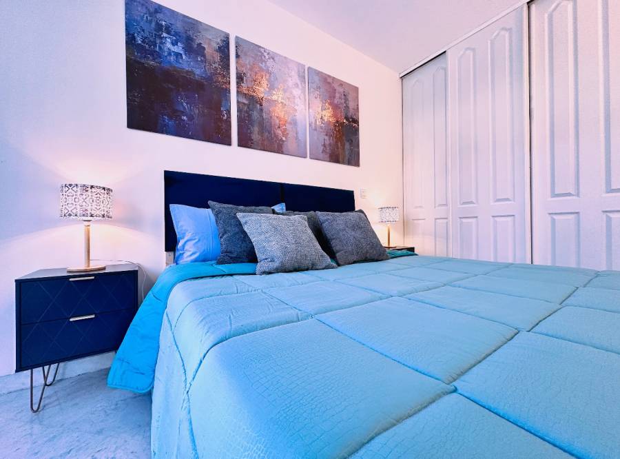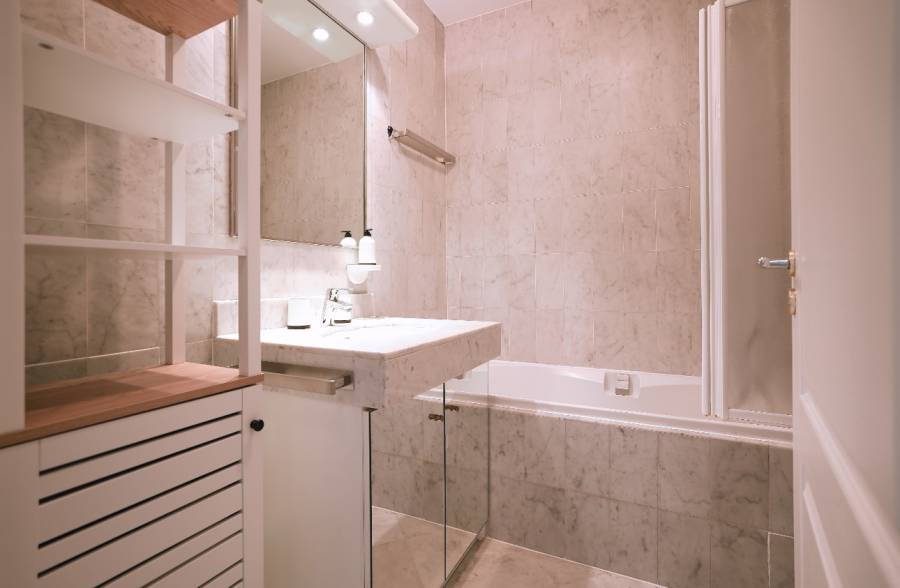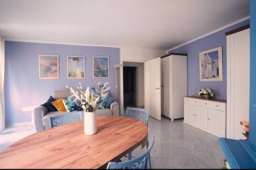 L’appartement se compose d’une élégante entrée menant à un vaste et lumineux séjour équipé d’un canapé-lit double. La cuisine moderne, ouverte sur le séjour, s’ouvre sur un joli balcon qui se prolonge en une agréable terrasse, parfaite pour profiter de repas en plein air sous le doux climat méditerranéen.