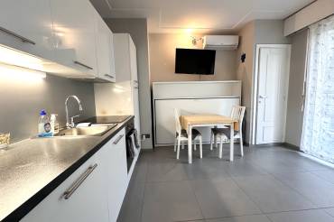 MENTON – Garavan. Dans une belle résidence récente en front de mer, à deux pas des plages, des commerces et du centre-ville. Découvrez ce studio de 22,2 m² recemment rénové et en parfait état. Il se compose d’une entrée avec rangement, d’une pièce de vie avec cuisine américaine aménagée et équipée, ainsi que d’un espace nuit optimisé grâce à un véritable lit escamotable avec canapé intégré, idéal pour accueillir plusieurs couchages. La salle de bains est équipée d’un WC et d’une douche. Le séjour s’ouvre sur un balcon de 4,50 m², parfait pour profiter du calme du quartier de Garavan. Climatisation réversible. Ce studio est idéal comme investissement locatif ou comme pied-à-terre.